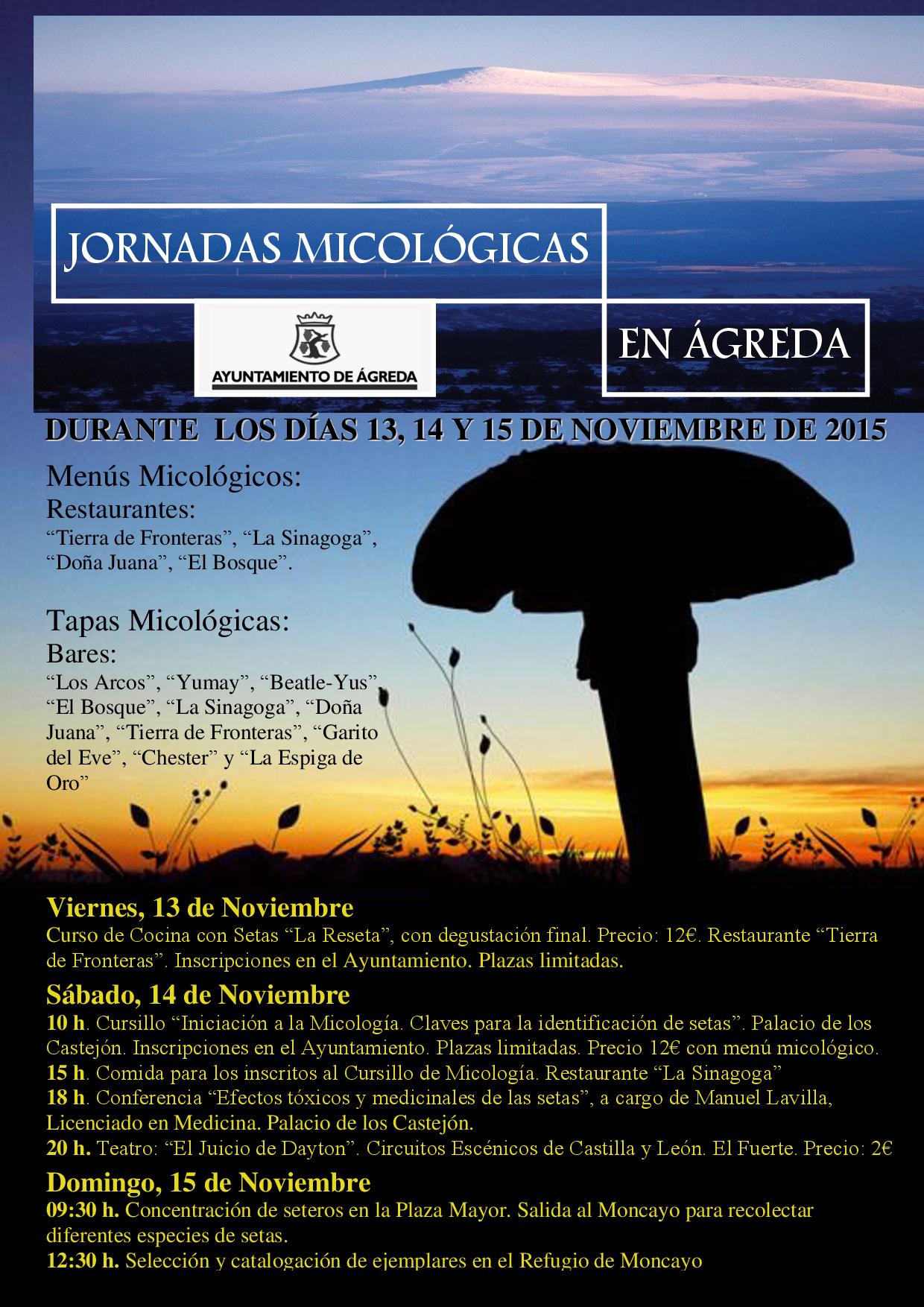 Continuarán el Sábado, 14, desde las 10 horas en el Palacio de los Castejón, con un “Curso de iniciación al reino fungi y claves para la identificación de las setas”. A posteriori, los inscritos al Curso disfrutarán de un Menú Micológico en el Restaurante “La Sinagoga”. Todo ello por el reducido precio de 12€. Inscripciones en el Ayto. de Ágreda.
