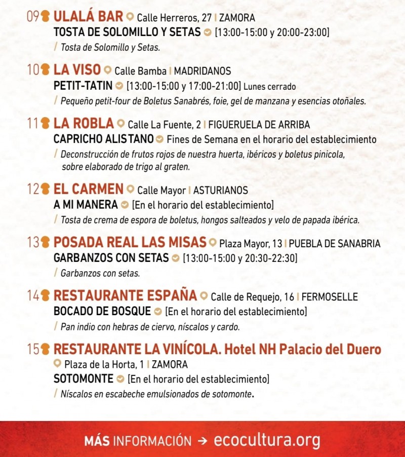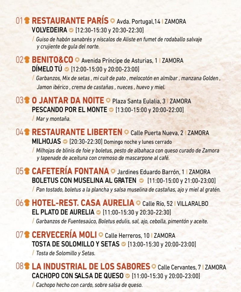 Las setas silvestres son protagonistas en establecimientos de Zamora capital, Villaralbo, Madridanos, Fermoselle, Figueruela de Arriba y varios puntos de Sanabria, como Puebla de Sanabria y Asturianos, establecimientos muy próximos al Parque Micológico Montes del Noroeste Zamorano.