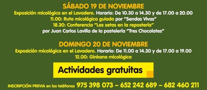 La localidad soriana de Villar del Río, ubicada en la comarca de Tierras Altas de Soria, organiza un fin de semana micológico los días 19 y 20 de noviembre, con el propósito de acercar a todo tipo de públicos el recurso micológico. Para ello ha programado diferentes actividades: Salida al campo guiada por especialistas de la empresa Sendas Vivas, una exposición y recreación del bosque en el lavadero del pueblo, una conferencia sobre "Las setas en la repostería" a cargo del afamado pastelero soriano Juan Carlos Lavilla (Pastelería Tres Chocolates) y una Ginkana Micológica para todo tipo de público (realizada por la empresa de educación ambiental Río Vivo).