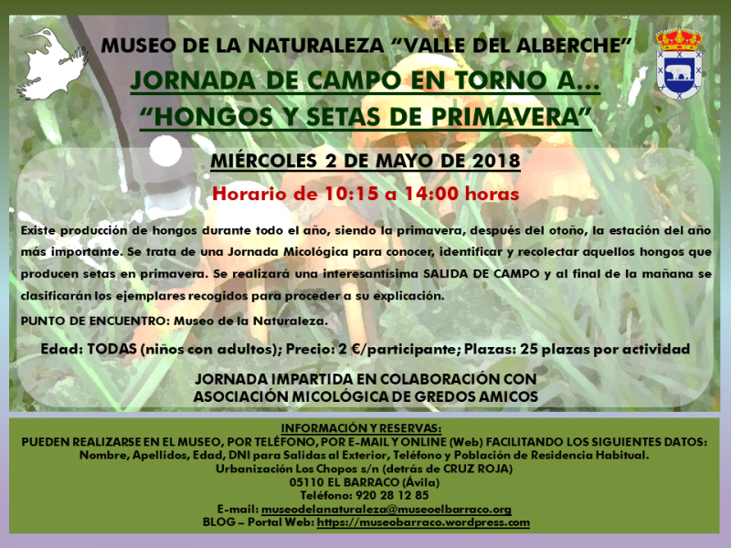 Se trata de una Jornada Micológica para conocer, identificar y recolectar aquellos hongos que producen setas en primavera. Se realizará una interesantísima salida de campo y al final de la mañana se clasificarán lo ejemplares recogidos para proceder a su explicación.