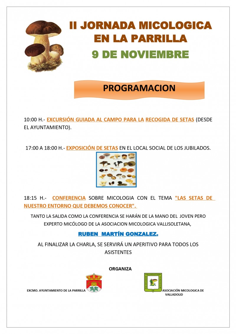 Más información: Teléfono Ayuntamiento de La Parrilla: 983 68 15 18 Asociación Vallisoletana de Micología: micologica.vallisoletana@gmail.com