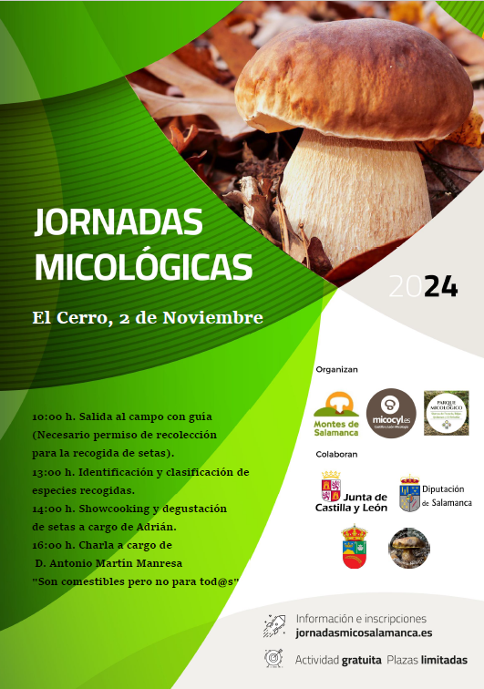 El sábado, 2 de noviembre, el programa Micocyl, junto con la Asociación para el Desarrollo Sostenible de los Municipios de las Sierras de Francia, Béjar, Quilamas y El Rebollar, organiza unas Jornadas Micológicas en el municipio salmantino de El Cerro, perteneciente al Parque Micológico "Sierras de Francia, Béjar, Quilamas y El Rebollar".