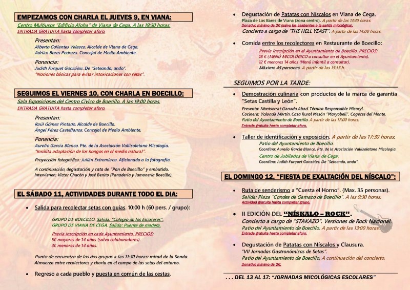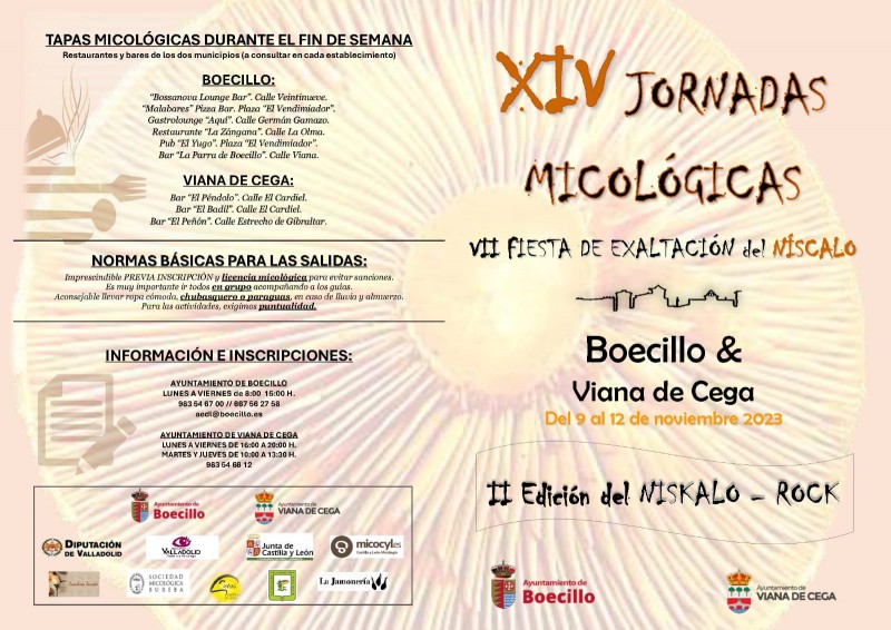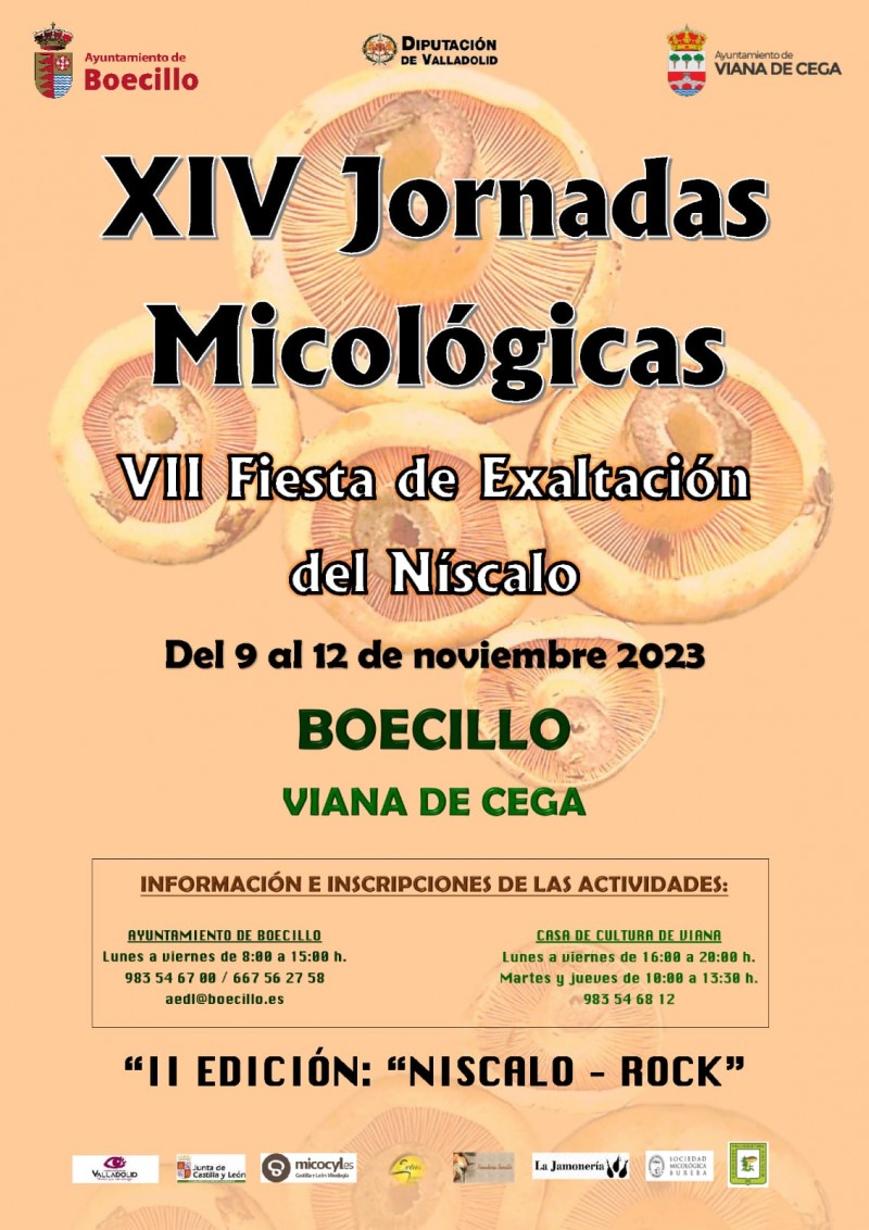 Un año más tenemos las XIV Jornadas Micológicas y la VII Fiesta de Exaltación del Níscalo que este año se celebran de forma conjunta en Boecillo y Viana de Cega del 9 al 12 de noviembre con un programa cargado de actividades para disfrutar de diferentes formas del mundo micológico.