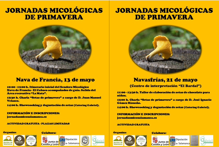El programa Micocyl, junto con la Asociación titular del Parque Micológico "Sierras de Francia, Béjar, Quilamas y El Rebollar" y en colaboración con la Diputación de Salamanca y la Junta de Castilla y León, organiza las I Jornadas Micológicas de Primavera en dos municipios pertenecientes al Parque Micológico, en la provincia de Salamanca.