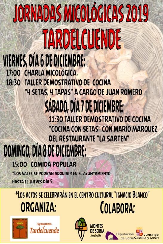 El ayuntamiento de Taldelcuende en colaboración con la Asociación Montes de Soria ha organizado, en el Centro Cultural "Ignacio Blanco" de la localidad, una nueva edición de Jornadas Micológicas, El programa consiste en: