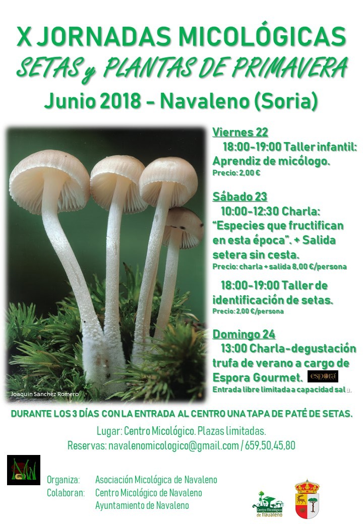 La Asociación Micológica de Navaleno organiza, en colaboración con el Ayuntamiento y el Centro Micológico de dicha localidad, las X Jornadas Micológicas de Primavera que se desarrollarán los días 22, 23 y 24 de junio de 2018.