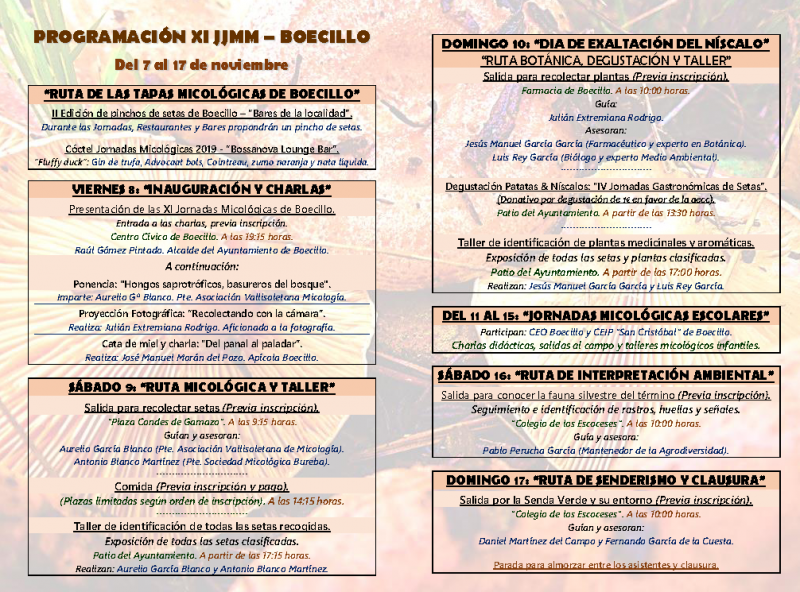 SÁBADO 9: “RUTA MICOLÓGICA Y TALLER”