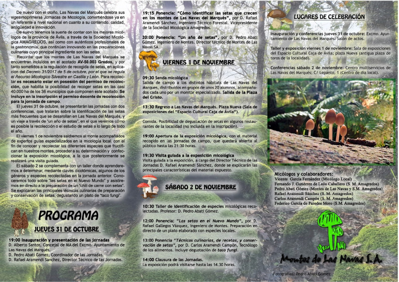 Inscripciones en https://lasnavasdelmarques.es/agenda/2024/xxi-jornadas-micologicas