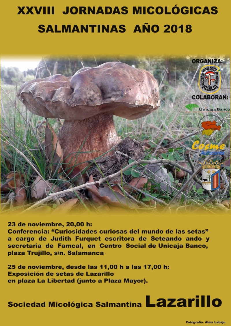 XXVIII Jornadas Micológicas Salmantinas. Del 23 al 25 de Noviembre de 2018