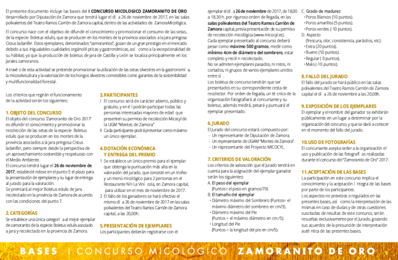 I Concurso Micológico Zamoranito de Oro, desarrollado por la Diputación de Zamora que tendrá lugar en las salas polivalentes del Teatro Ramos Carrión.