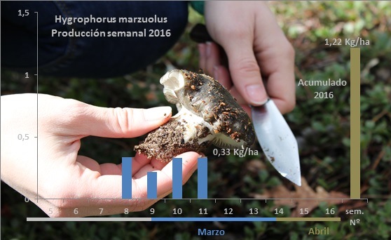 La producción de “marzuelos” es bastante constante de febrero a abril con picos de producción en marzo. Las condiciones climatológicas continúan siendo favorables para su fructificación, pudiendo haber sido beneficiosas las últimas nevadas. Sin embargo la campaña  ha sido atípica, ya que hemos tenido un invierno anormalmente templado aunque con abundantes precipitaciones. Estas circunstancias han provocado el adelanto de las fructificaciones en más de un mes con respecto a lo normal.
