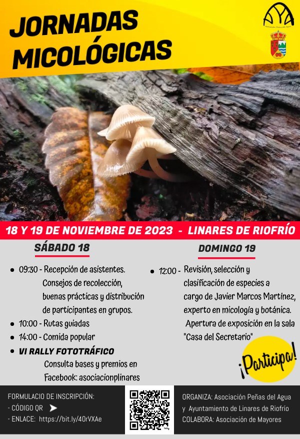 El sábado, 18 de noviembre y el domingo, 19 de noviembre, la localidad de Linares de Riofrío en Salamanca, perteneciente al Parque micológico "Sierras de Francia, Béjar, Quilamas y El Rebollar", celebra sus jornadas micológicas.