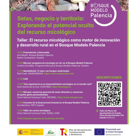 Se presentarán el Programa Micocyl y los nuevos acotados dentro del Bosque Modelo Palencia y se compartirán experiencias emprendedoras de referencia, como MundoReishi, EcoFungi y Micopal, junto con una charla sobre innovación y bioeconomía forestal a cargo de PEFC España. La jornada matinal concluirá con un taller de cocina micológica y degustación de pinchos 🍽️, dirigido por el chef palentino Rural Chef.