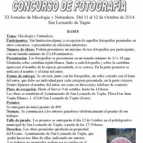 Plazo de recepción: Hasta el Jueves 9 de octubre, hasta las 14 horas. Las obras se remitirán al Ayuntamiento de San Leonardo de Yagüe. Plaza Don Juan Yagüe Blanco, 1. 42140 San Leonardo de Yagüe (Soria).