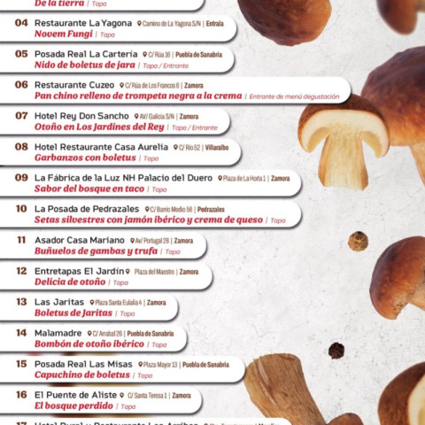 Los nombres de los establecimientos participantes están disponibles en el documento adjunto a esta noticia. ¡No pierdas la oportunidad de disfrutar de esta experiencia única y saborear lo mejor del otoño zamorano!