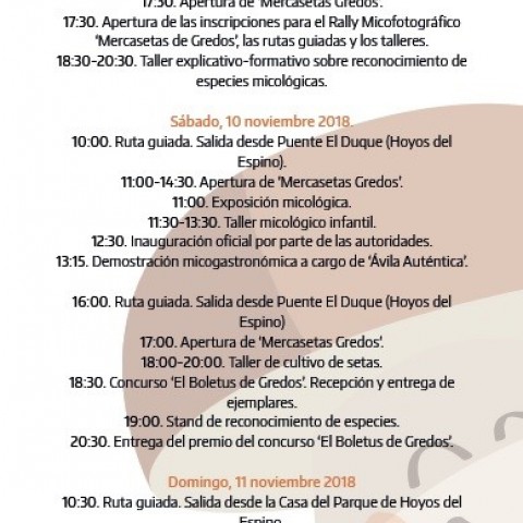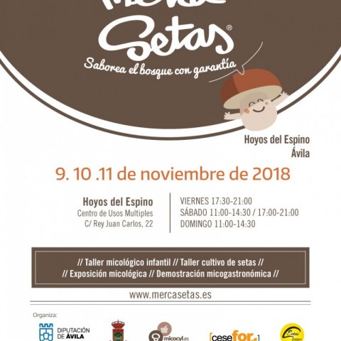 Esta edición de Mercasetas, la primera en la provincia de Ávila, ha sido organizada por la Diputación de Ávila, el Ayuntamiento de Hoyos del Espino, el Programa de Micología de Castilla y León (Micocyl), la Fundación Cesefor y la Marca de Garantía 'Setas de Castilla y León'. Las actividades previstas, que se detallan en el programa inferior, se llevarán a cabo en el marco de una pequeña feria con expositores del ámbito de la micología y productores pertenecientes a la marca colectiva 'Ávila Auténtica'.