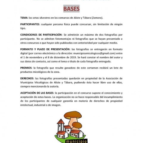 Las fotografías se entregarán entre el 1 de noviembre y el 8 de diciembre de 2019, en forma digital, en la siguiente dirección: municipiosmicologicos@gmail.com