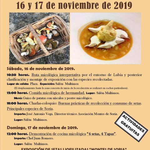 La Entidad Local Menor de Lubia, el Ayuntamiento del Cubo de la Solana y la Asociación Montes de Soria organizan las Jornadas Micológicas que se desarrollarán los días 16 y 17 de noviembre de 2019.