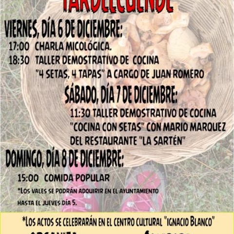 15:00 Comida Micológica Popular. Los vales se podrán adquirir en el ayuntamiento hasta el jueves 5 de diciembre.