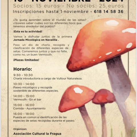 10:30 - 14:00 h - Ruta micológica por los montes de Navalilla, identificación y recolección sostenible de diferentes especies.