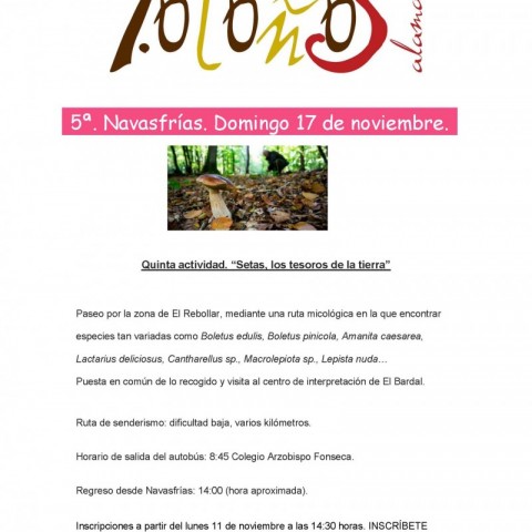 La quinta actividad del programa Mil Otoños, tiene lugar en Navasfrías y el programa es el siguiente: