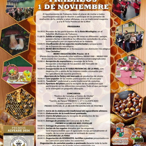 El próximo 1 de noviembre, el municipio de Trabazos acoge la XVIII edición de las Jornadas de Exaltación de la Castaña y Setas Alistanas, un evento organizado por el Ayuntamiento que atraerá a aficionados a la micología y amantes de la gastronomía local.