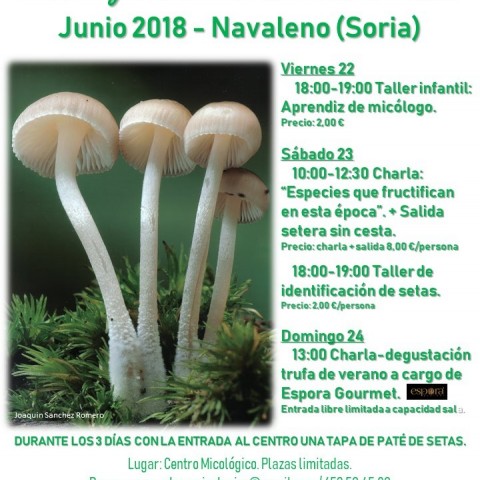 La Asociación Micológica de Navaleno organiza, en colaboración con el Ayuntamiento y el Centro Micológico de dicha localidad, las X Jornadas Micológicas de Primavera que se desarrollarán los días 22, 23 y 24 de junio de 2018.