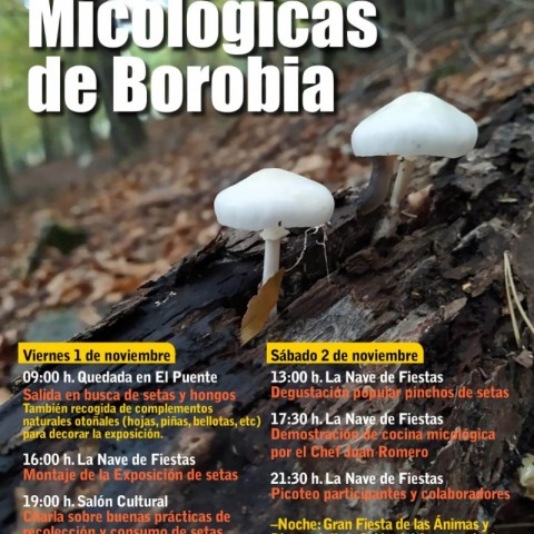 El Ayuntamiento de Borobia y la Asociación Montes de Soria organizan junto con la Asociación Cultural La Raya las XIX Jornadas Micológicas en las que se realizarán salidas al campo para buscar setas y motar la exposición en fresco, Degustaciones populares de pinchos micológicos, una charla sobre "buenas prácticas de recolección y consumo de setas" a cargo de José Antonio Vega, director técnico de la Asociación Montes de Soria y un taller demostrativo de cocina micológica a cargo del Chef Juan Romero. Todo ello se desarrollará en la nave de fiestas y el salón cultural del Ayuntamiento.