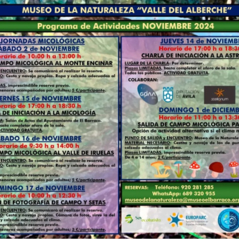 9:30-14:00 Salida Micológica de Campo al Valle Iruelas: Recoleción de muestras. Nociones básicas para la recolección de las setas. Recolección de ejemplares para su identificación y estudio.