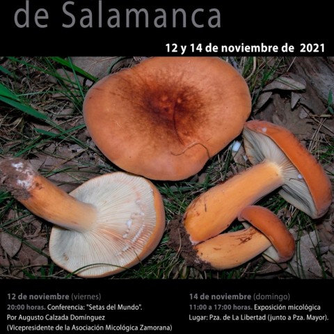El viernes, 12 de noviembre, a las 20:00 horas, tendrá lugar la Conferencia "Setas del mundo" a cargo de Augusto Calzada Domínguez (Vicepresidente de la Asociación Micológica Zamorana) en el Centro municipal integrado Trujillo, en la Plaza Trujillo de Salamanca.
