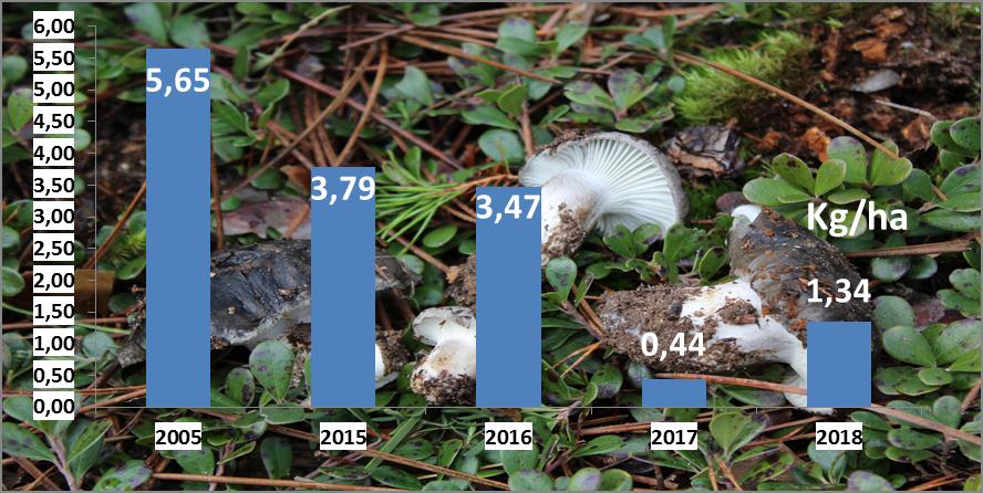 A partir de los muestreos realizados por CESEFOR en las parcelas de estudio de la provincia de Soria, dentro del programa de micología de Castilla y León (www.micocyl.es), la producción bruta acumulada este año ha sido de poco más de 1,3 kg/ ha, superior a la producción registrada en 2017 pero por debajo de la media interanual de 3 kg por hectárea.